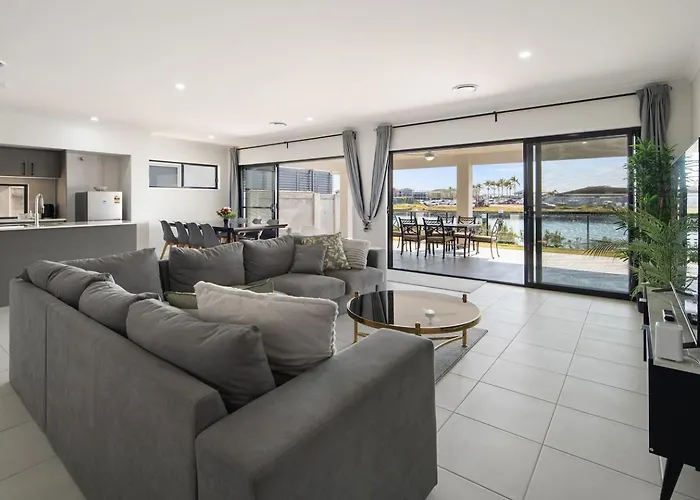 Offering the river views, Serena By The Water - Family Retreat In Hope Island villa features a patio. Bathroom facilities also include a separate toilet and a shower. There are a hairdryer and bath sheets for guests' comfort.